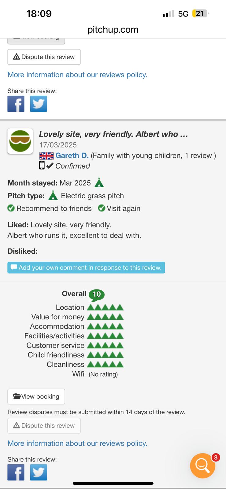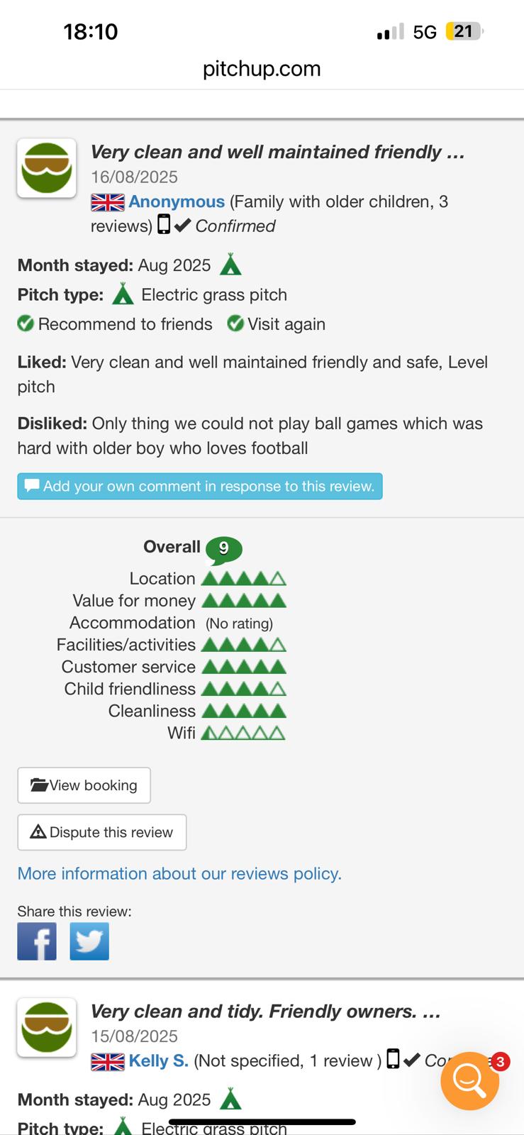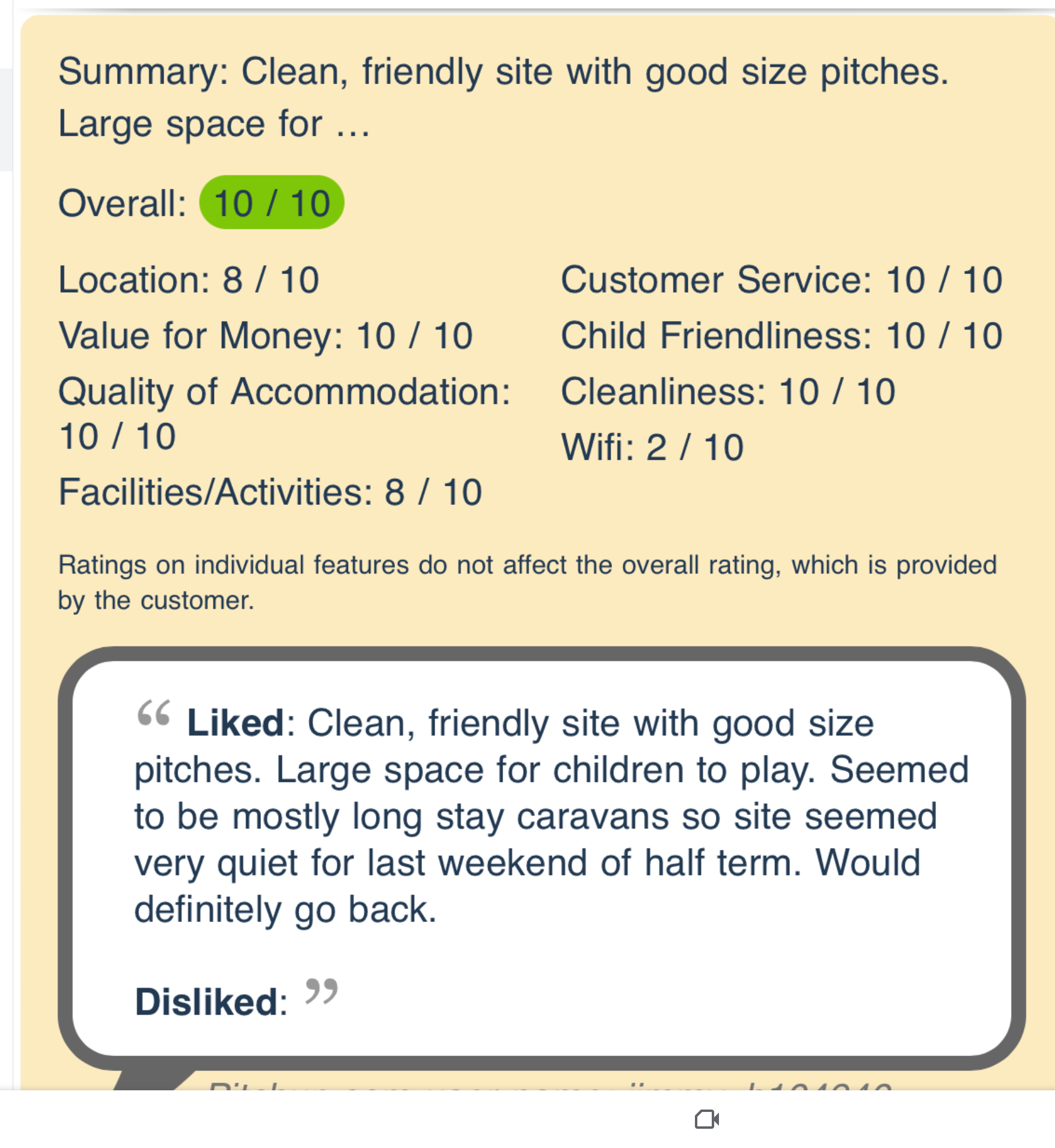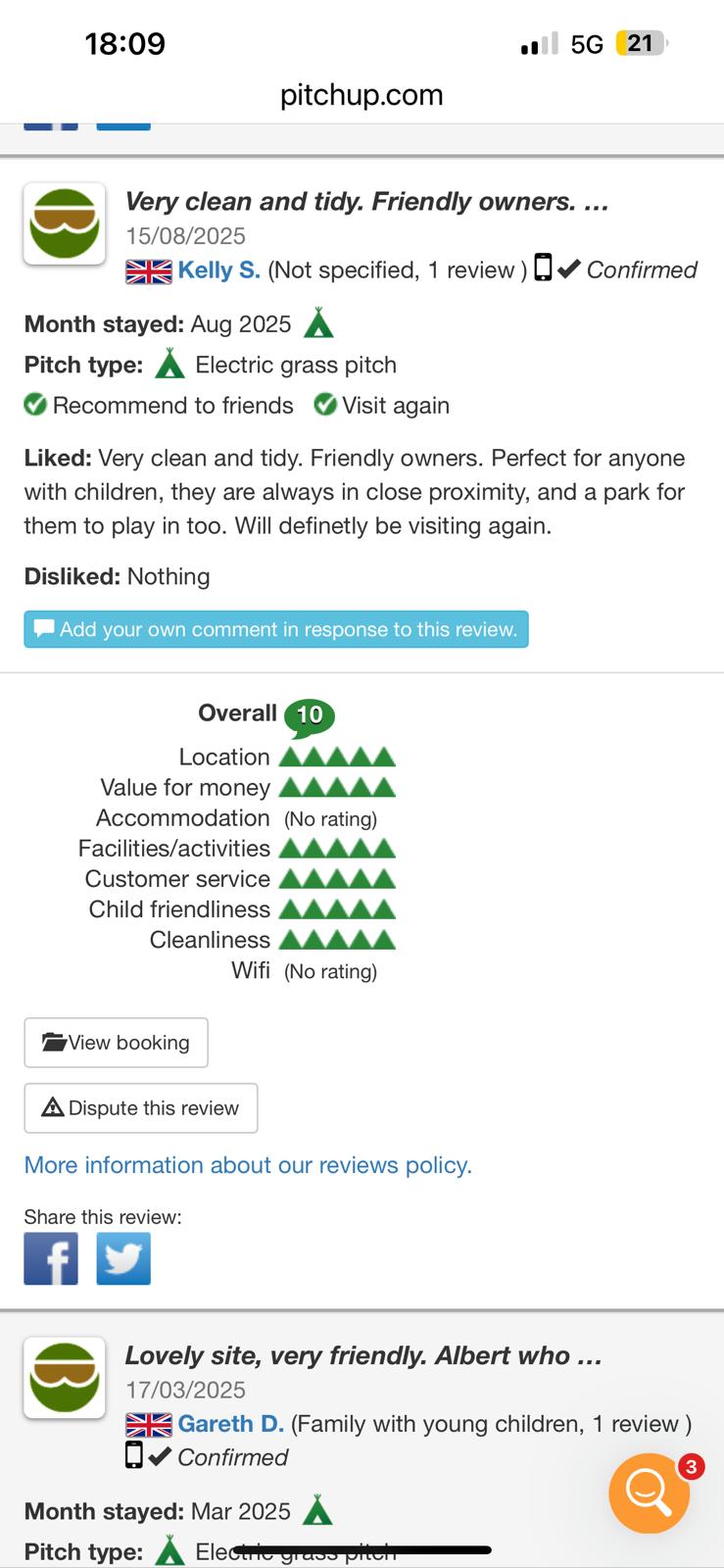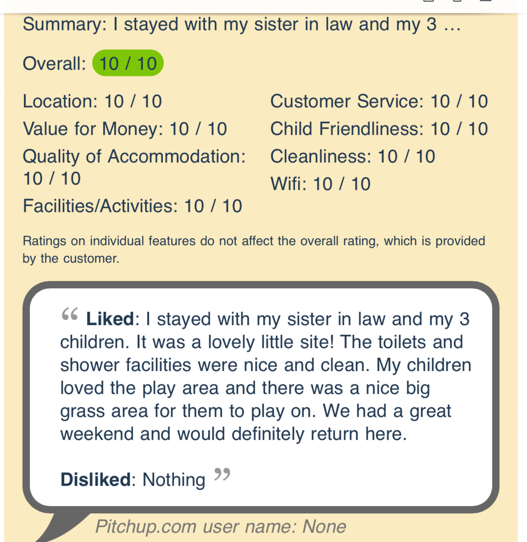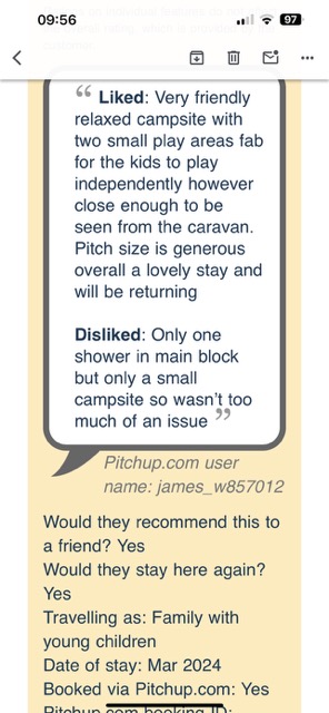'What can I say the best camp site I have ever stayed in. The grounds are like a golf green the grass in cut short. The play area for kids is brilliant. The toilet and showers are better than the ones in my own home.