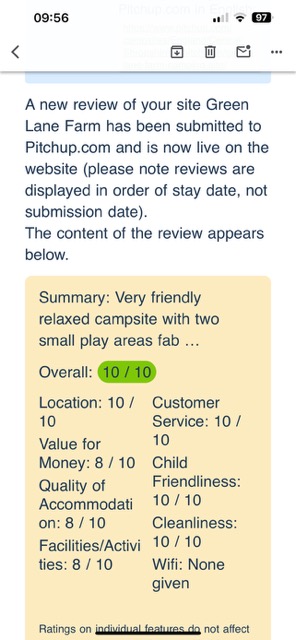 We have just returned from a night at Green Lane Farm. It is a lovely site with generous pitches and plenty of space for the kids to run around.